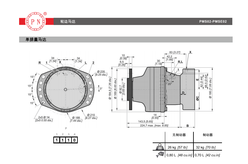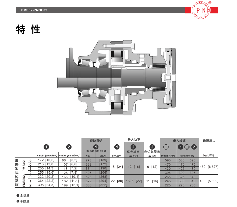 PNMS系列液压马达是-种低速大扭矩的内曲线柱塞马达,它采用平面配油方式,滚柱式结构,使用压力高,低速稳定性好,同时可集成各类阀组,制动器,特别适用于车轮式行